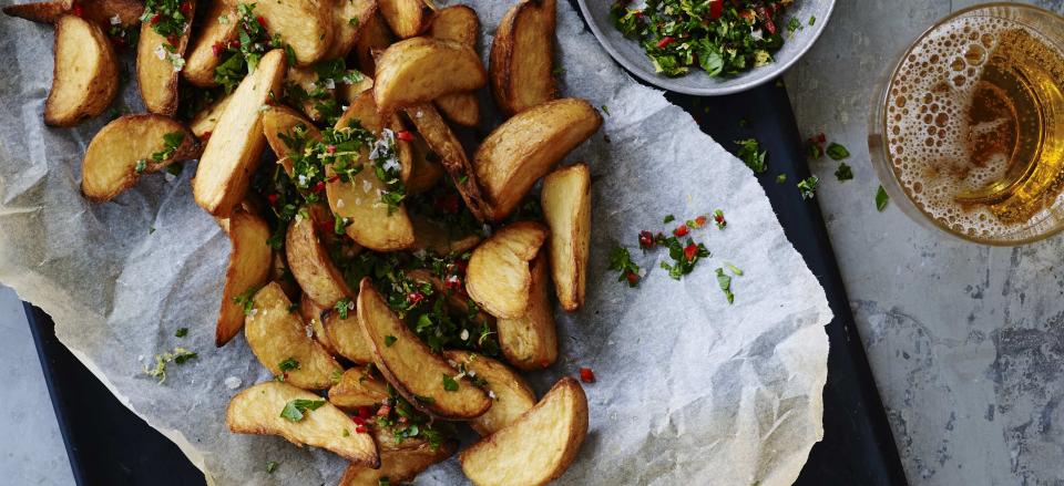 Hak persille sammen med citronskal og chili og bland med salt og godt med sort peber.