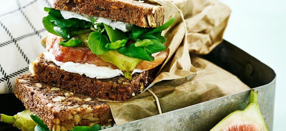 Smør rugbrødet med gedefrisk-ost, og læg skiver af hamburgerryg på.