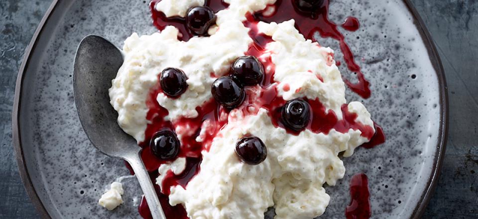 Server den lune kirsebærsauce sammen med risalamanden.
