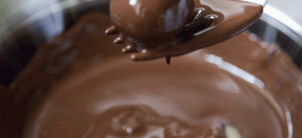 Kog fløden op, tilsæt chokoladen og tag gryden af varmen.