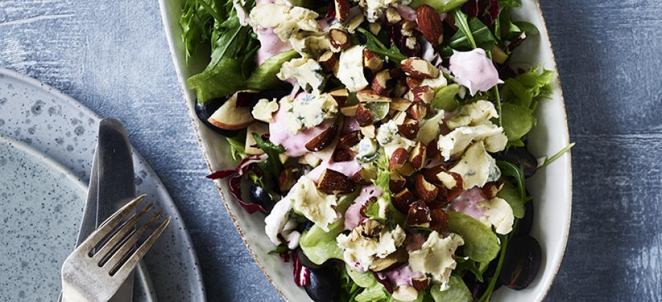 Riv salaten i grove stykker og snit radicchio i strimler.