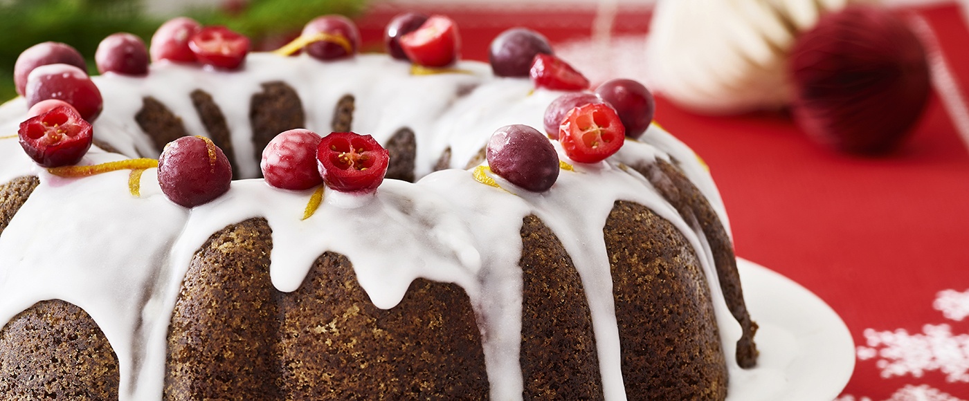 Krydderkage med tranebær og appelsinglasur
