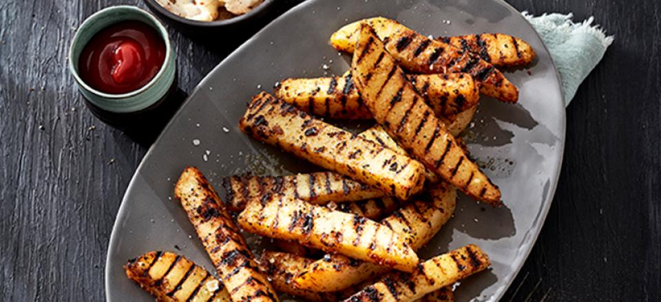 Fordel kartoflerne på en varm grill, og grill dem i ca. 15 – 20 min. ved indirekte varme til de er møre og gyldne.