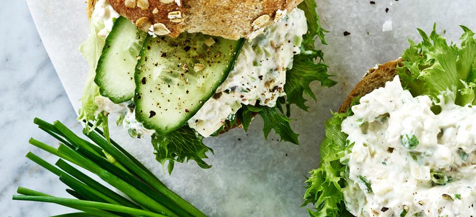 Bland det hele sammen med mayonnaise, skyr og klippet purløg.