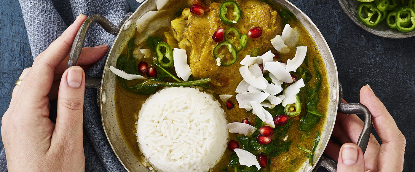 Kylling tikka masala med kokos og spinat