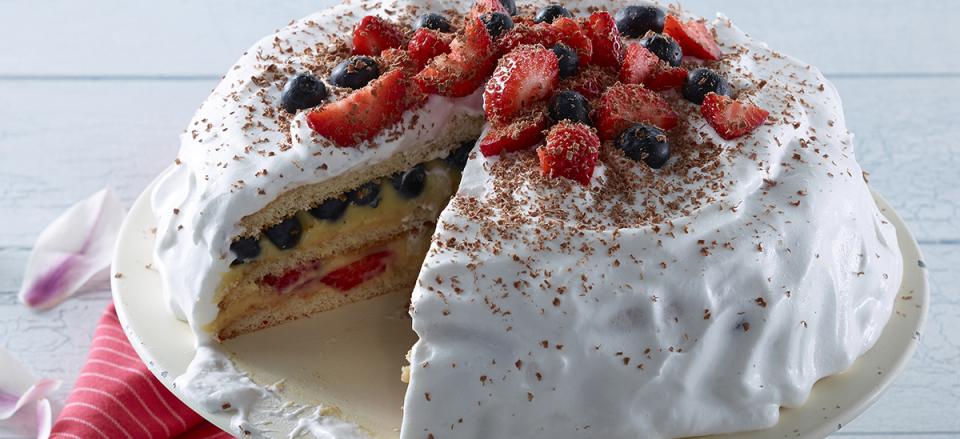Pisk Alpro soja cremen stift, dæk hele lagkagen med den piskede Alpro creme.
