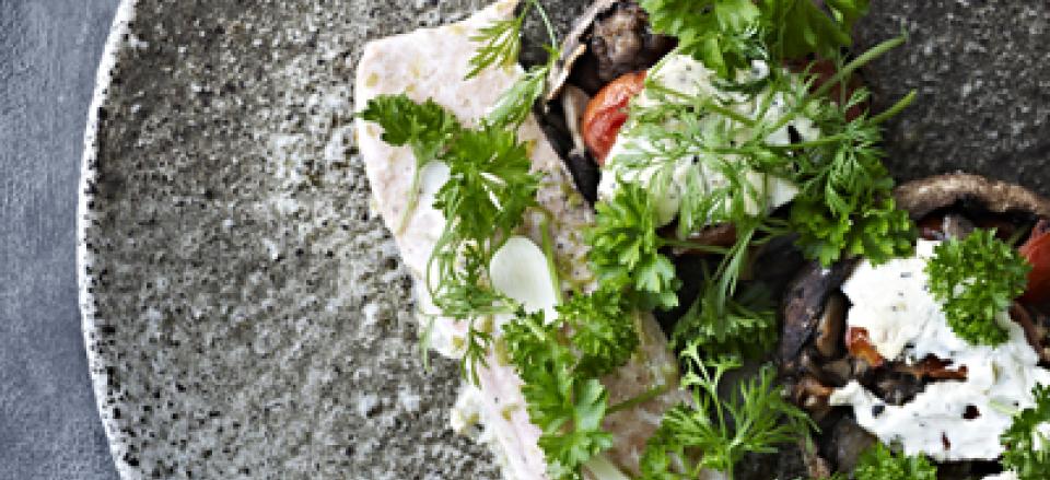 Svampene bages i ovnen på 180° i 9-12 minutter alt efter størrelse.