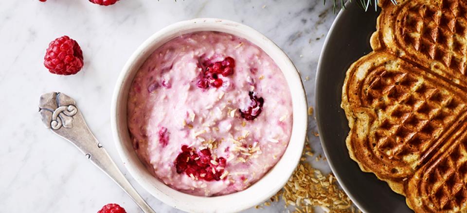 Lad det køle lidt af og bland med skyr, hindbær og rørsukker.