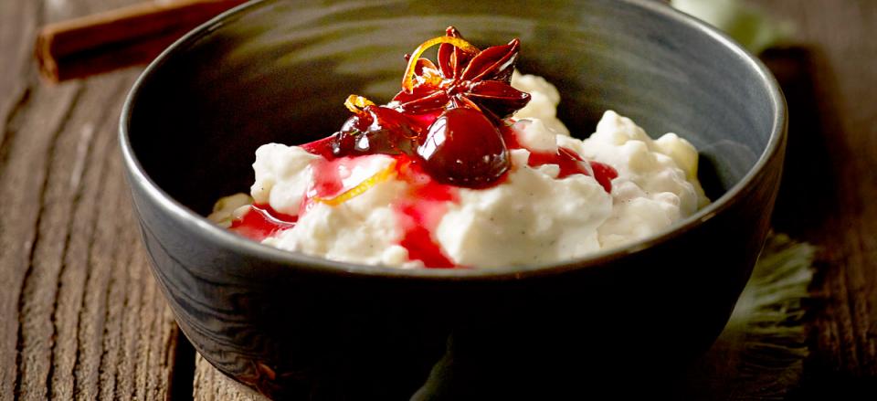 Vend piskefløden i den afkølede risengrød og sæt den på køl indtil servering.
