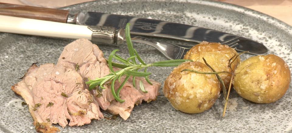 Kom kartoflerne i en bradepande med hakket rosmarin og havsalt.