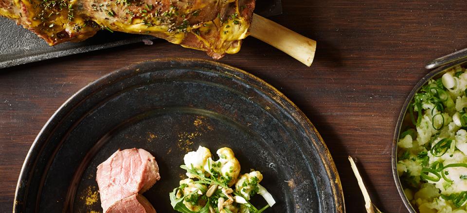 Lammekølle i sennep og rosmarin med blomkålssalat