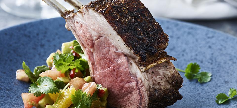 Lammekrone med dry rub og spicy avocadosalsa