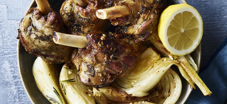 Hak rosmarin, salvie og hvidløg og vend lammet i det sammen med det sidste olie.
