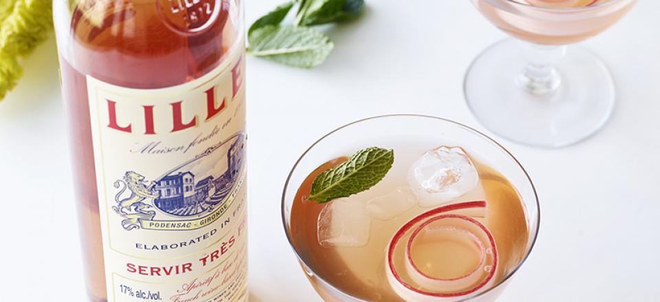 Bland Lillet med vodka, rabarbersaft og citronsaft.