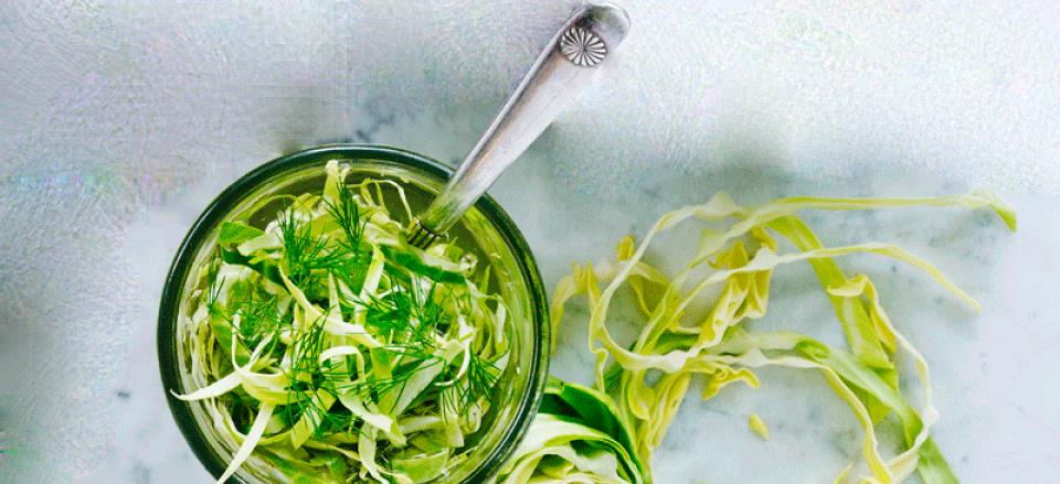 Lynsyltet spidskål med dild & sennep