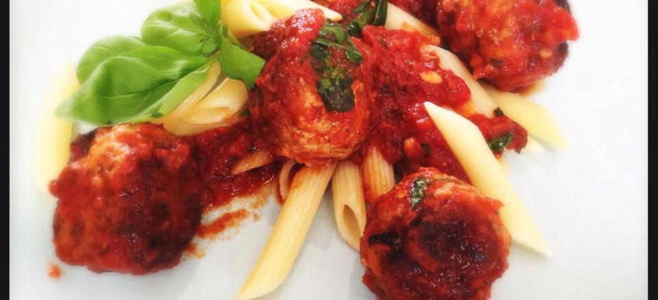 Når de er næsten færdigstegte tilsættes tomatsaucen.
