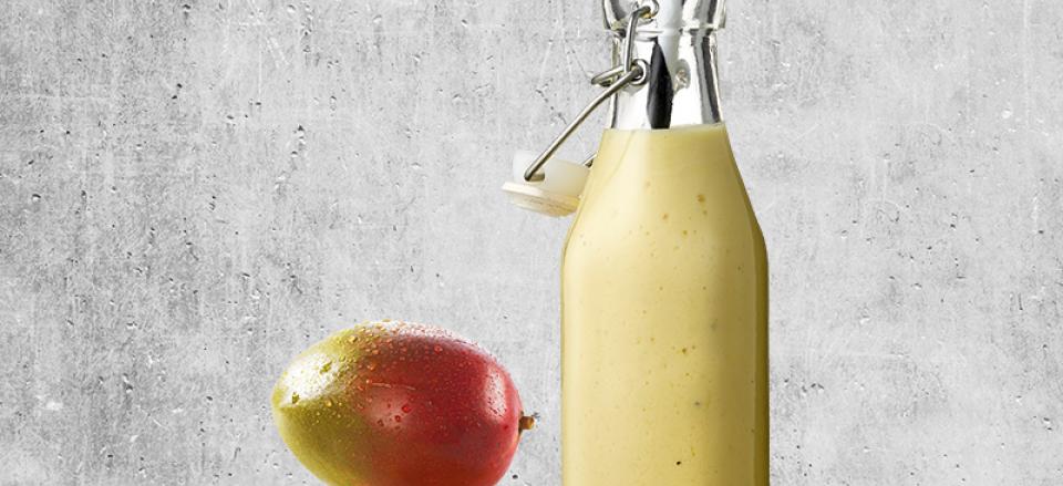 Blend mango, honning, kardemomme og mælk sammen i ca. 30 sekunder til ensartet cremet konsistens.