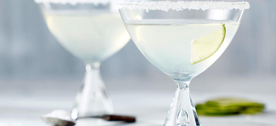 Si drinken over i et afkølet cocktailglas, og servér med en skive lime.