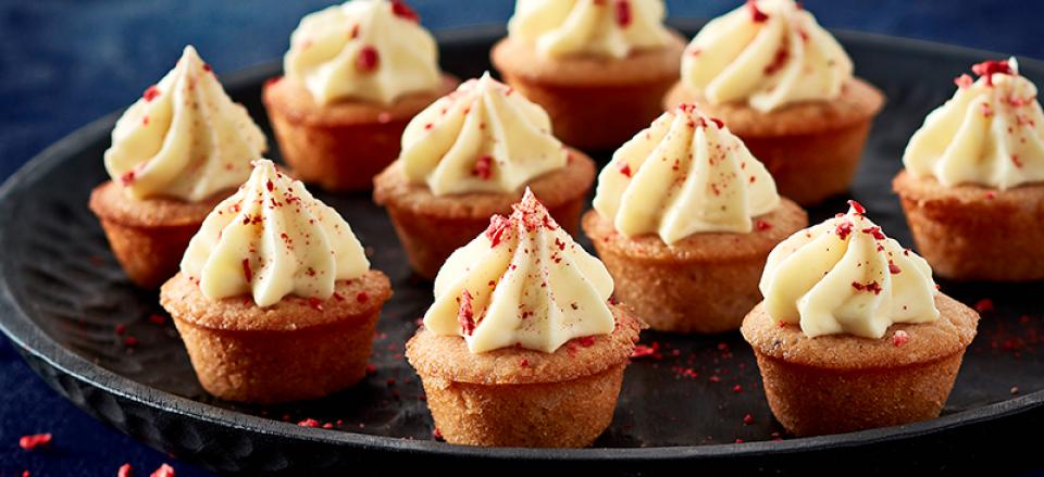 Smør mini-muffinforme med smør, fordel dejen i formene og bag dem ved 175°C i ca. 15 minutter.
