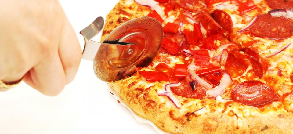 Tip: De to pizzadele kan klappes sammen og spises som en sandwich.