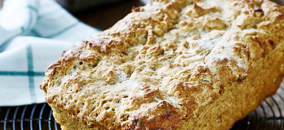 Tag brødet ud af formen, og lad det køle af på en rist.