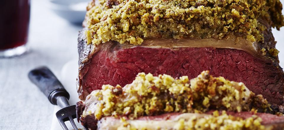 Steg kødet færdig i ovnen i ca. 40 min eller til centrumtemperaturen måler 56° C for medium-rare stegning.