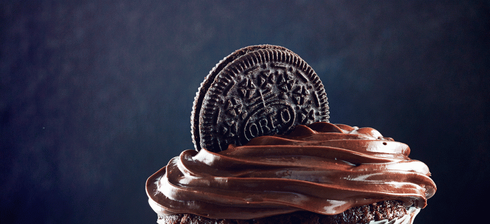 Sæt en Oreo i midten, og sæt kagerne på køl indtil servering.