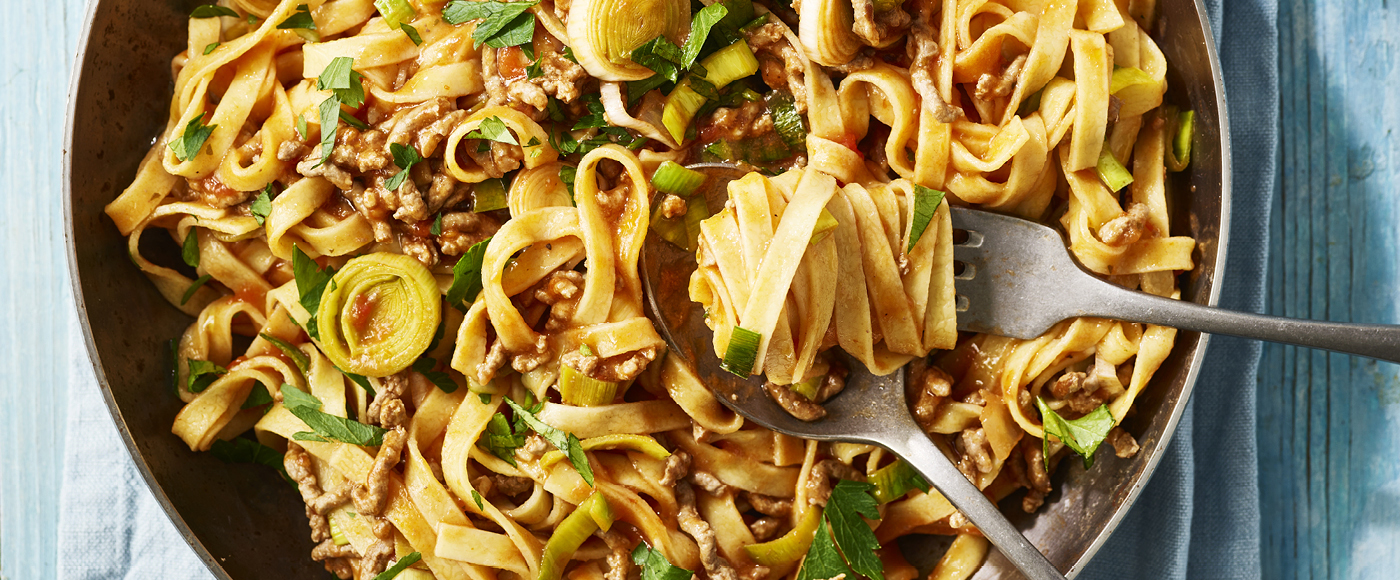 Pasta bolognese med porre
