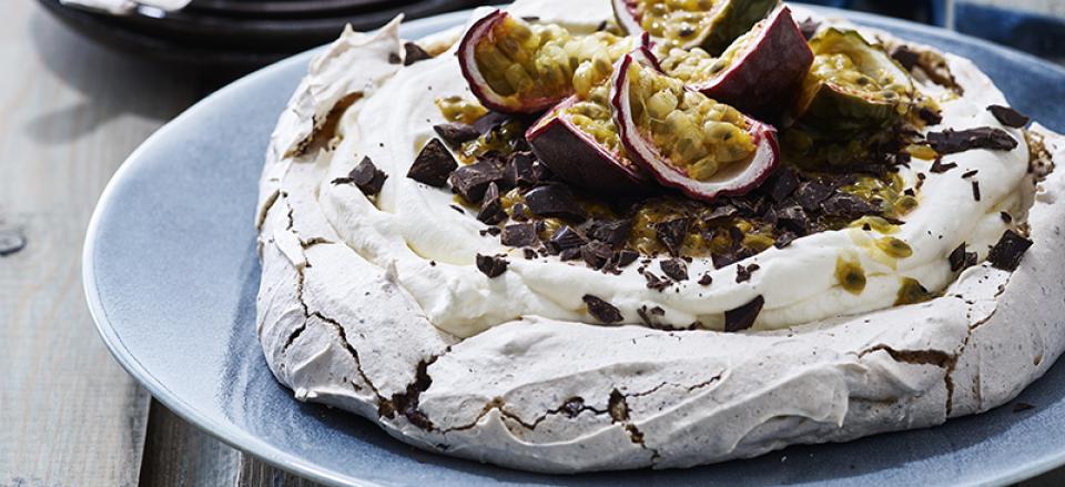 Lad dem køle ned i den lukkede ovn i 1-2 timer og pynt dem med flødeskum, passionsfrugt og evt. lidt hakket chokolade.