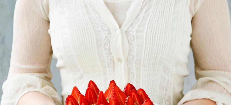 Skrab kernerne ud af passionsfrugterne og del jordbærrene.