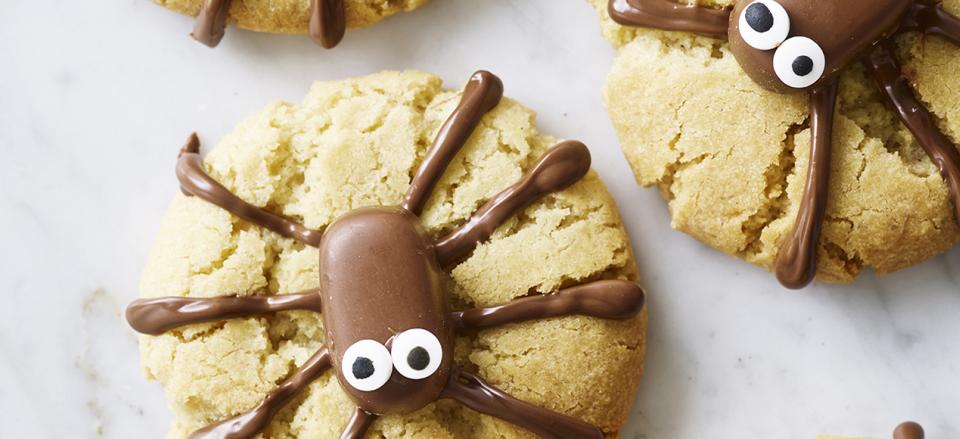 Sprøjt otte ben på hver kage og brug chokoladen til at klistre øjne fast på Dumlen.
