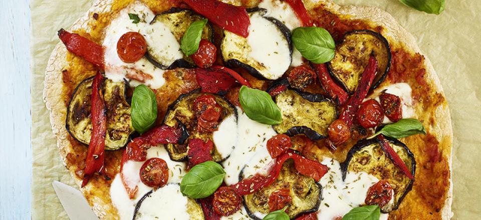 Pizza med grillede grøntsager
