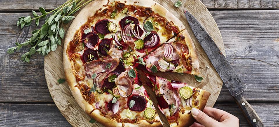 Pizza med rødbede, kål og bacon