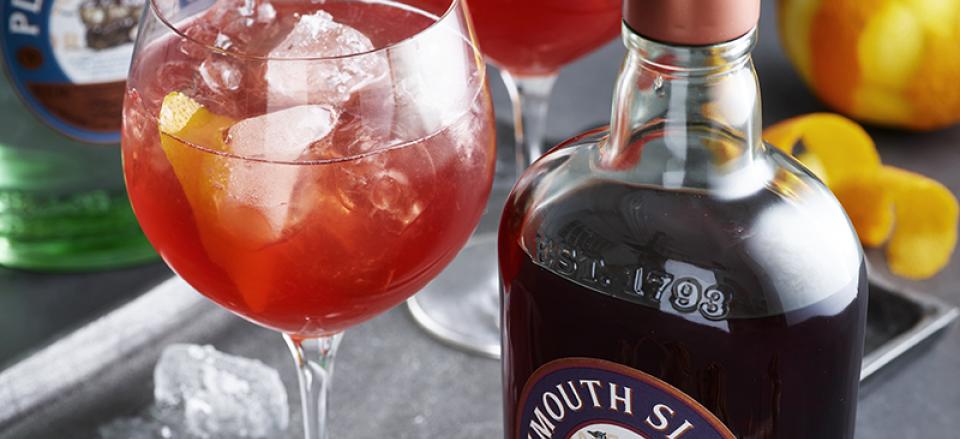 Hæld Plymouth Sloe gin op I et glas og fyld glasset med isterninger.