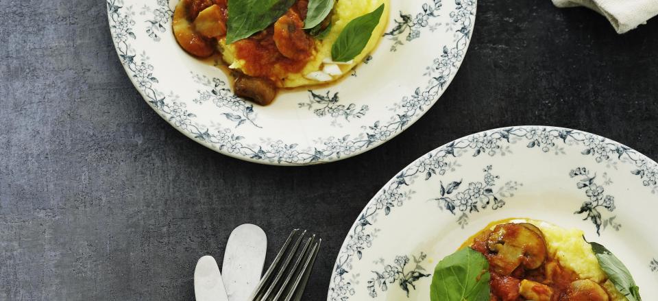 Hav 4 tallerkner parate til når polenta og sovs er klare.