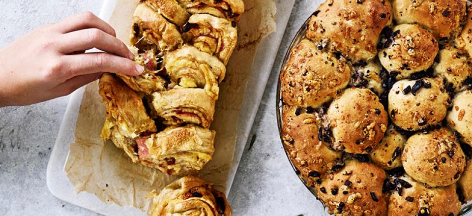 Pull apart brød med Leerdammer, tomat og parmaskinke