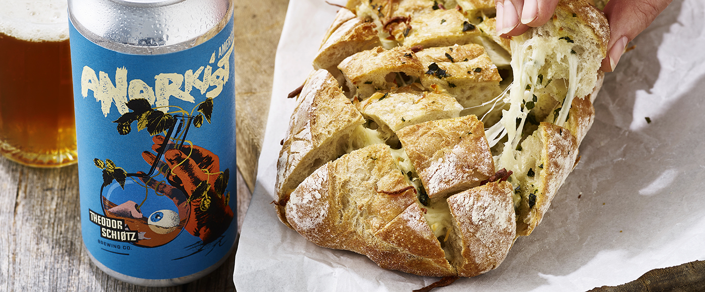 Bag eller grill brødet i 10-15 min. ved 200°C, og server det varmt, så osten er blød.