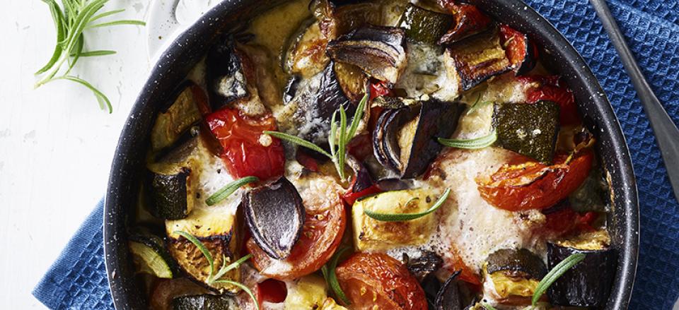 Efter 20 min. smuldres gedeosten over og retten bages færdig i 10 min.