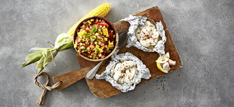 Majssalsa: Trim majskolberne og kog dem møre i letsaltet vand.