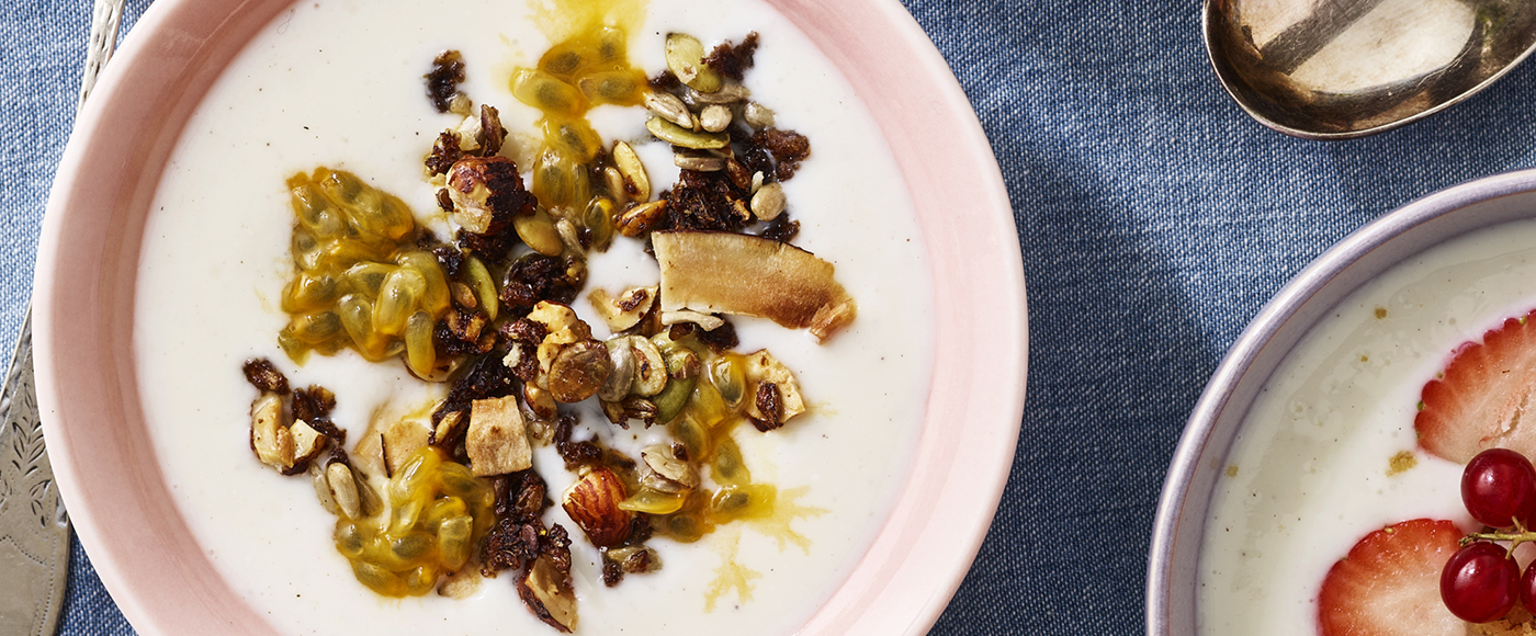Lad drysset køle af og kom det på koldskål sammen med passionsfrugt.