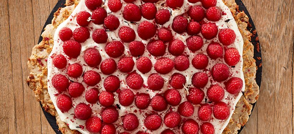 Rustik hindbærtærte med creme og friske hindbær