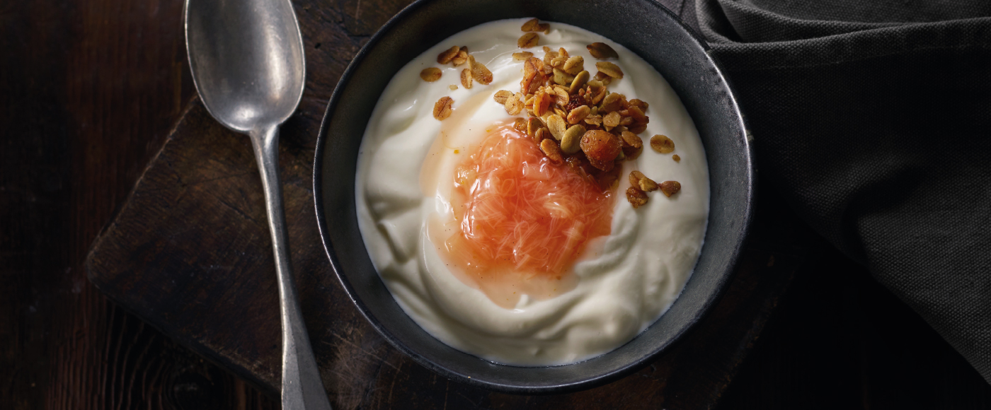 Flæk vaniljestangen og læg den i gryden indimellem rabarberne.