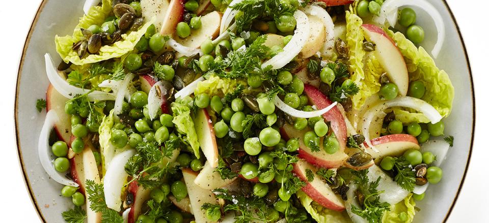 Salat med ærter, æbler og græskarkerner