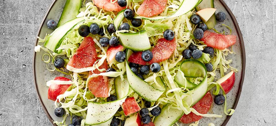 Salat med blåbær, grape og spidskål