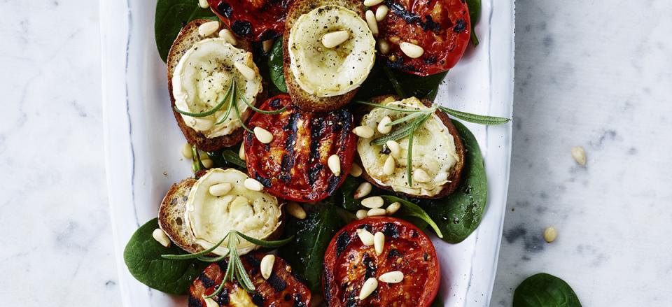 Halver tomaterne og læg dem på grillen (indirekte varme) til de får flotte gril-aftegninger.