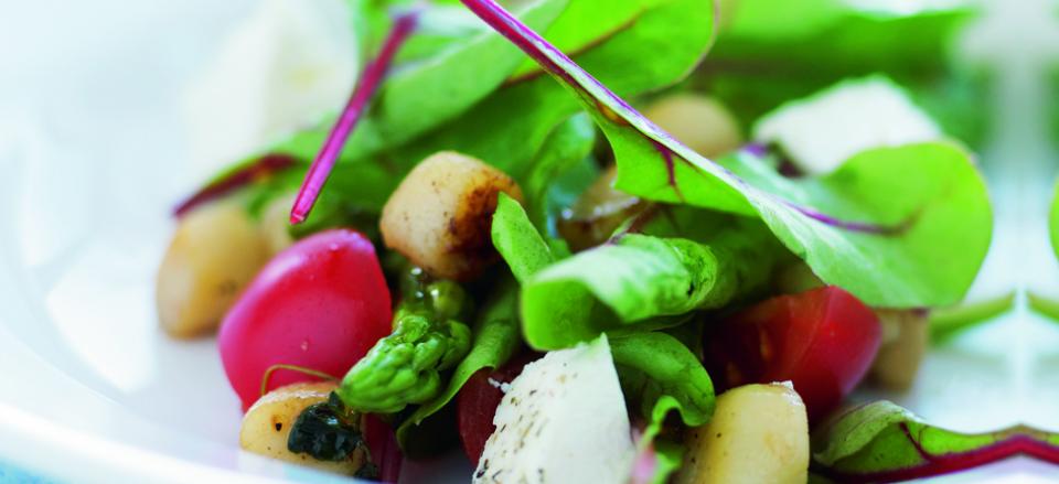 Salat med hvidløgsristede kammuslinger og gedeost
