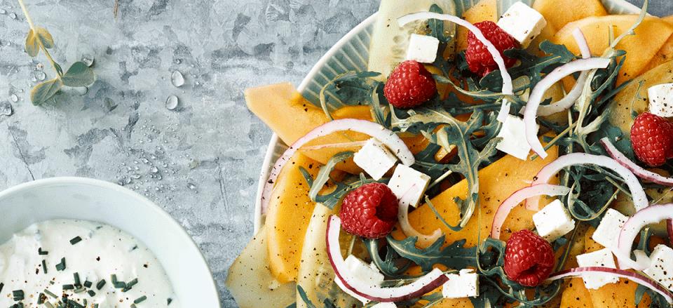 Salat med melon og hindbær