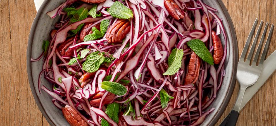 Tilsæt pekannødder, og vend salaten sammen med balsamicodressing.