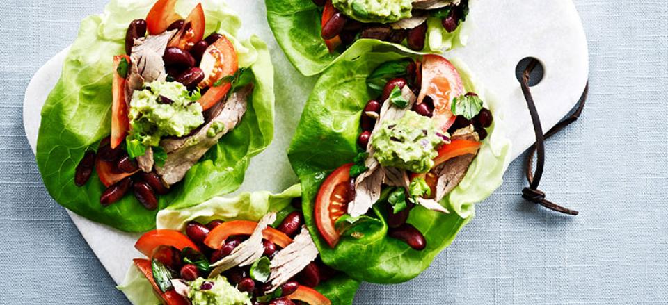 Salatwraps med avocado og tomatsalat med bønner