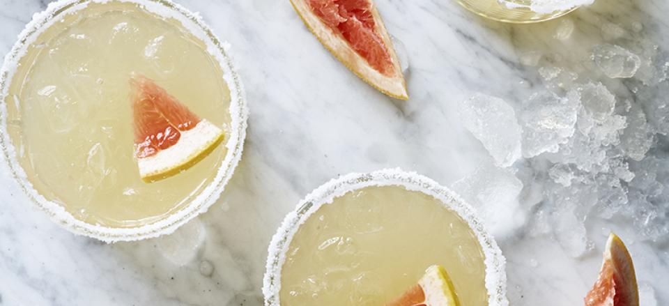 Skær en skive grapefrugt og brug som pynt og pres juicen af resten ned i glasset.